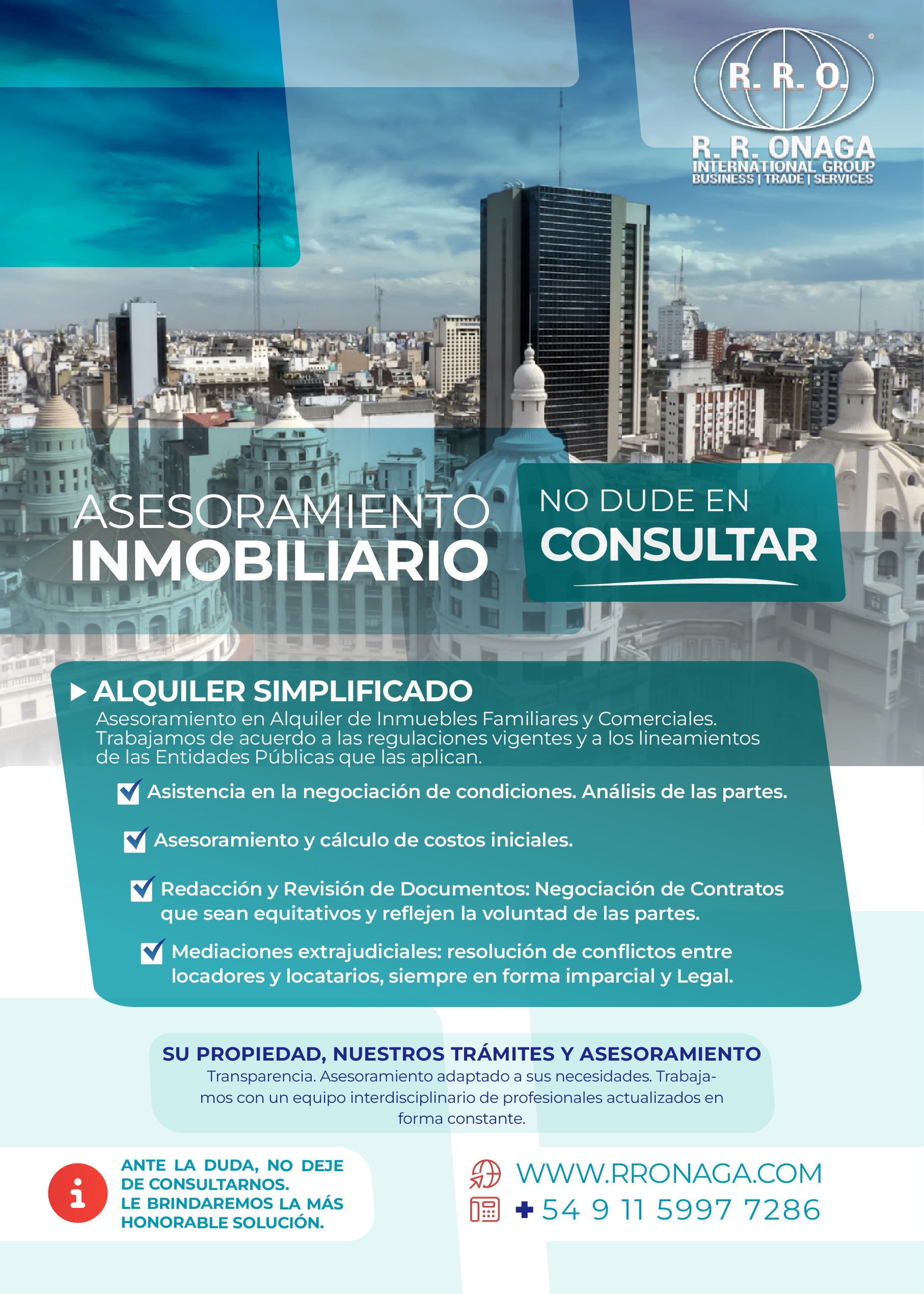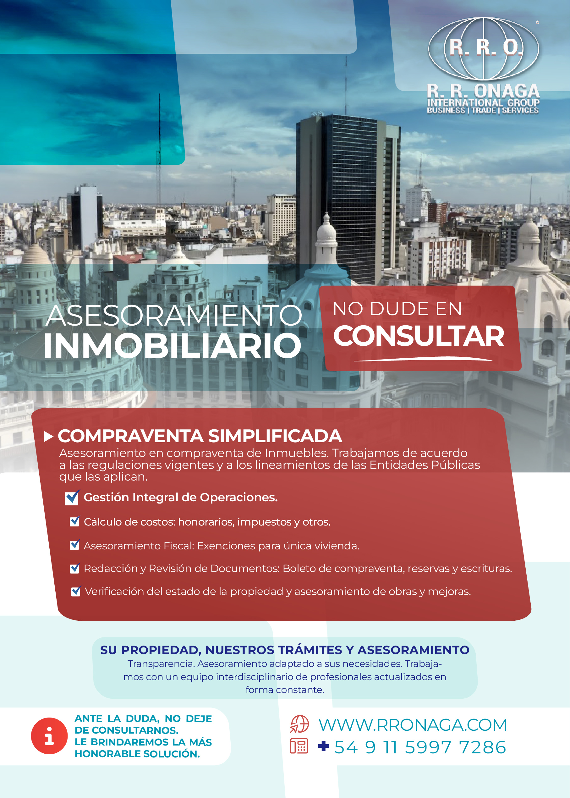 En R.R. ONAGA - ARGENTINA SH, entendemos que cada decisión inmobiliaria es un paso fundamental para su futuro. Por ello, ofrecemos una gestión estratégica que combina el análisis de mercado con la seguridad jurídica, garantizando transacciones claras y beneficiosas. Nuestro enfoque de Asesoramiento Personalizado integra a un equipo de profesionales (abogados, escribanos, contadores e ingenieros) para brindarle la "más honorable solución" en cada etapa.